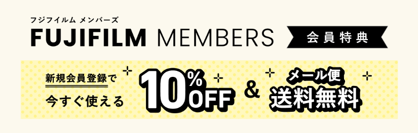 フジフイルム公式メンバーの会員登録をすると、10%オフになるクーポンや特典がもらえます。